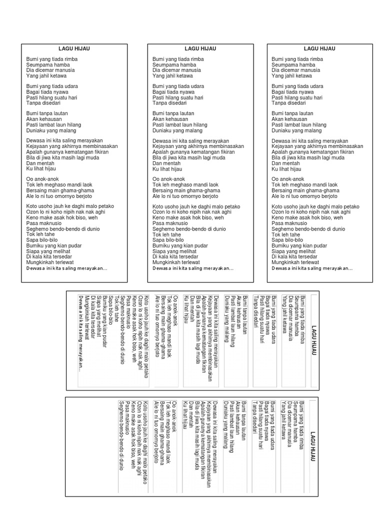 Añadir a mis cuadernos 0 Insertar en mi web o blog Añadir a Google Classroom Añadir a Microsoft Teams Compartir por Whatsapp. Lagu Hijau terilham daripada Sungai Kelang dan Sungai Gombak yang kotor. Get up to 3 months of free music.